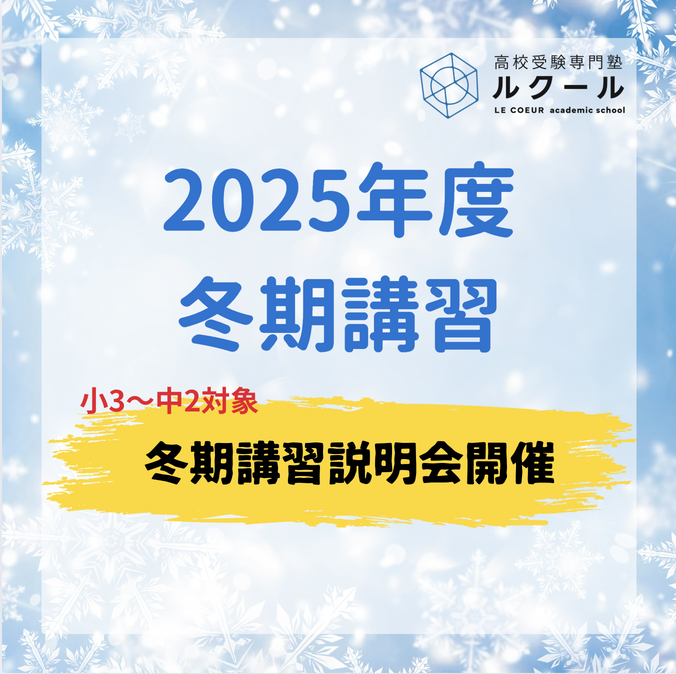 以下の日程で冬期講習説明会を実施させていただきます。