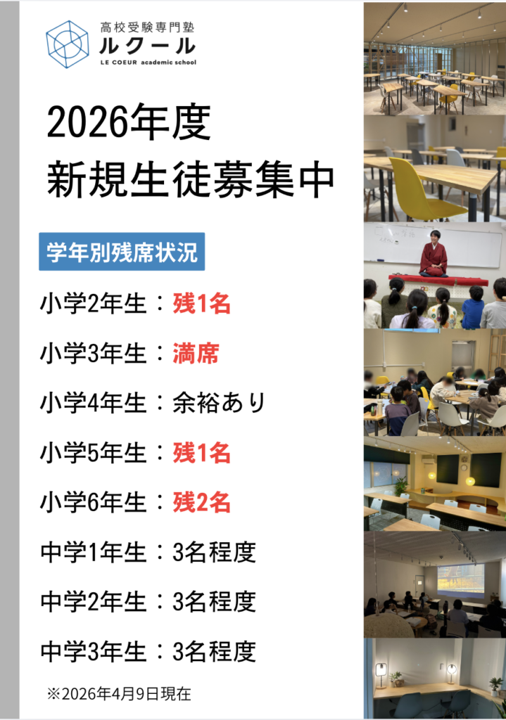 さて、2026年度の新規入塾募集状況についてのお知らせです。